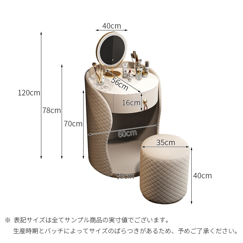 柔らかな曲線を描く円筒形のシルエットが特徴的で、芸術性の高いデザインのドレッサーです。サイドに施された繊細なダイヤモンドキルティングのPUレザーが、寝室にモダンで上品なライトラグジュアリーな雰囲気をもたらします。