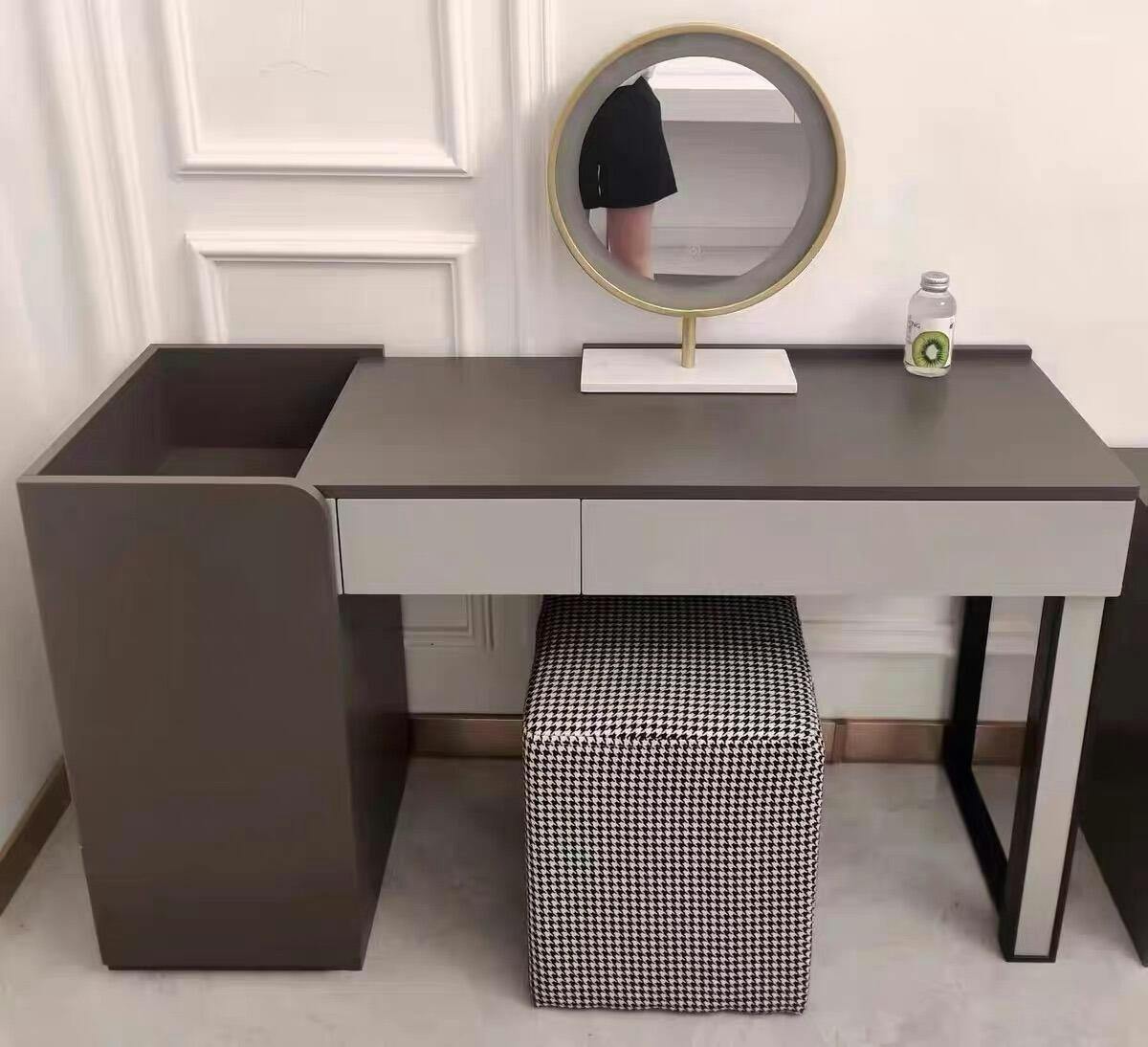 ドレッサー/北欧 テーブル 収納棚 椅子 LEDミラー ダブルカラー ※安心1年間品質保証 ※収納棚は左右調整可能です。