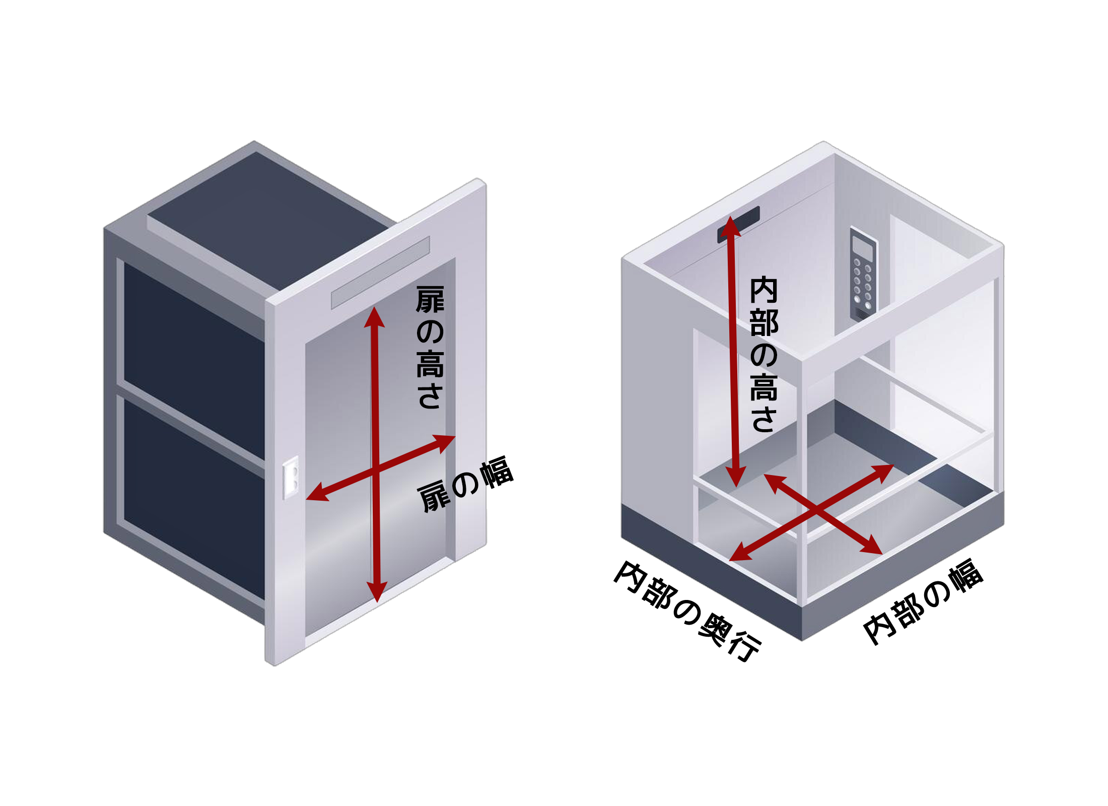エレベーターを使用しての搬入を検討する場合は、エレベーターの扉の幅や高さに加えて、内部の天井の高さや奥行きも確認が必要です。商品のサイズが扉より大きい場合には、傾けて運ぶ必要があるかもしれません。 また、エレベーターには担架運搬用に奥行きが伸びるタイプもありますので、不安があれば管理会社や管理人に相談することをお勧めします。