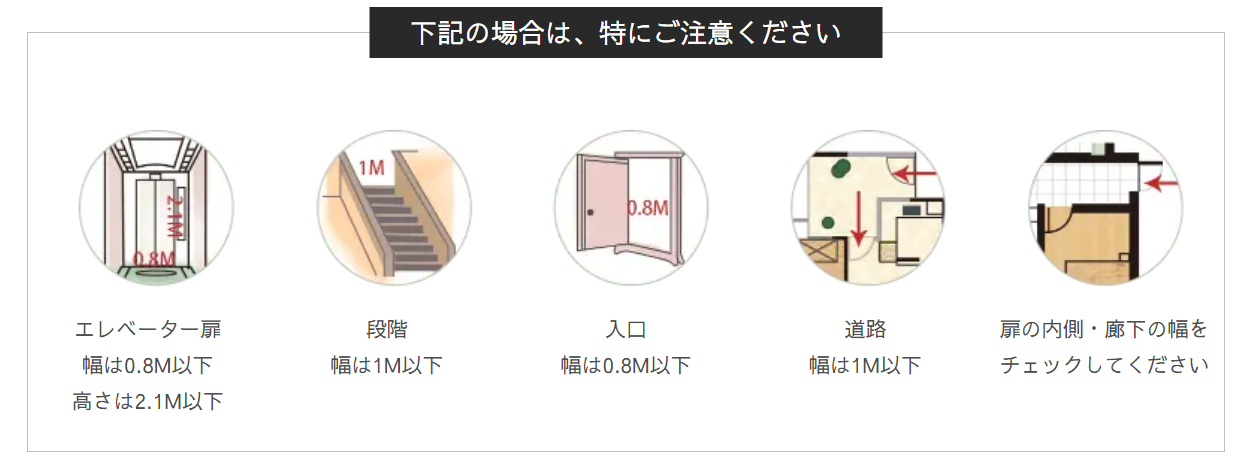 お部屋に商品を搬入するための条件を事前にご確認いただき、スムーズな配送をご体験いただけるようお願い申し上げます。