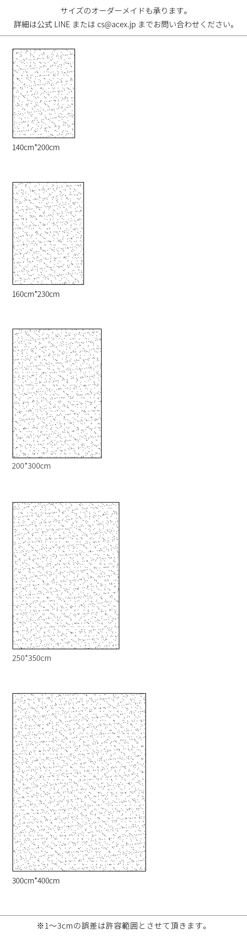 弊社側提携した国際物流の運輸のルール上の制限があるため、 カーペットは片側の辺が「200cm」以上の場合には折れた形のみ配達可能になります。